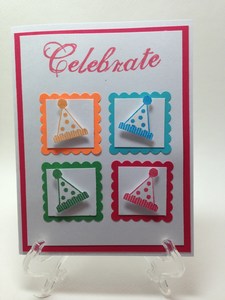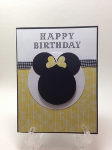Still doing some birthday cards. This party hat card came together very fast. Matched up the inked hat with some matching paper and your done.The next card was pretty simple also. Just a few circle and heart punches and your done. This card is so cute for a little girl, who doesn’t love Minnie.