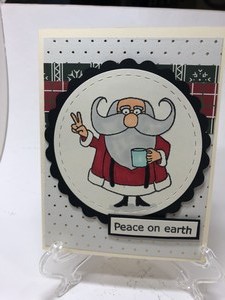 We all want peace in the world, even Santa. I love this stamp set of Santa holding his fingers up showing peace, and of course he has his hot cocoa with him.