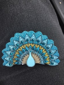 I have always loved peacocks and when my parent’s had their farm they had around twenty at one time or another. A friend of mine had this stamp set where you can layer the stamps on a peacock. I was able to make it into a pin for her. I added a few rhinestones on the tips of the feathers to give them a little bling.