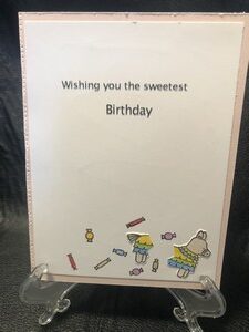 This is such a cute little card for any girl. Great for a birthday! I made it so that the pinata swings at the top of the frame. For the inside I colored another pinata and cut it in half to show it broken open and added a few pieces of candy scattered around. Cute isn’t it.