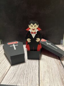 I made several of these pop ups as a gift just for fun. It is a vampire which pops up out of his casket when you open the box.