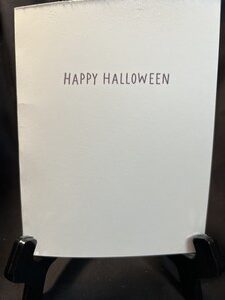 I used some decorative paper in several different rectangles for the front and die cut the princess in black card stock. I die cut the haunted house and stamped a few bats in yellow ink. A simple sentiment of Trick or Treat on the front.