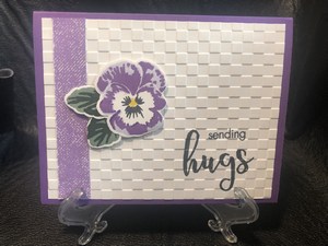 Here are a couple of easy cards that a beginner can make.  I used a couple different embossing folders and stamped a couple of purple pansies.  Add a little designer paper and you have a couple of cards.