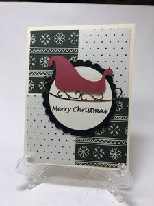 Here are a couple of cards using Santa’s sleigh die. I used scraps of cards stock for the background and added the Merry Christmas sentiment to both cards.
