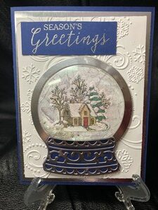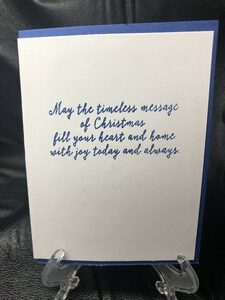 The globe part of the card is filled with sequins and glitter to look like snow falling when you shake the card.  The sentiment is quite lovely for this card, “May the timeless message of Christmas fill your heart and home with joy today and always.”