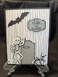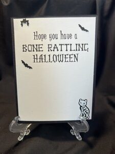 For the inside I found this sentiment which is perfect for the skeleton. I also added a kitty waiting and a few bats.