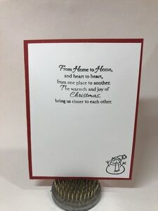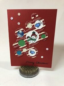 I call this one snowman swirl because it reminds me of a snow storm and snow swirling around. I first die cut the circles out and then colored different parts of the snowman and put the picture behind the circles. I thought the saying on the inside would be good for family or friends that no longer live close by.