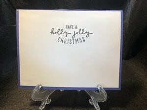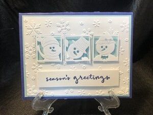 This is a cute trio of snowmen.  I die cut them out on white card stock and then added some blue card stock for the background.  I then embossed the front with snowflakes. For the inside I thought the holly jolly sentiment was perfect for the snowmen.