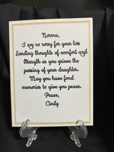 I really don’t like to make these kinds of cards because they are so hard to make. I made this one for one of my card group members who lost her daughter to cancer. I hope she felt a little better knowing others are thinking of her in her time of need.