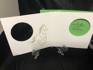 I kept the colors pretty simple and the horse images were stamped in brown and the trees with garden green. No bling for this card just in case you would want to give it to a male. I did add a little twine to the left of the card on the front.