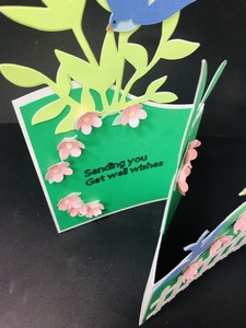 I made this card using my Cricut machine. I love all the colors I used and it would certainly make someone feel better after receiving this card. The very back of the card is a spot to write your message.