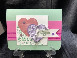 This is another card that I used the January Paper Pumpkin kit and made this card. I cut the treat bag open and used it for the background on this card. I stamped the Happy Valentine’s Day sentiment on the little tag and added a twine bow. I stamped a heart on the inside that says with love.