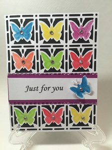I used a butterfly die for the card front and then painted each of the butterflies wings. Added a little bling to their body and a sentiment and the cards were done. These would make a great gift for the end of year teacher gifts or a Spring or Summer birthday. As you can see this type of card can be made into several different sentiments, it could even be used as a Mother’s day card.