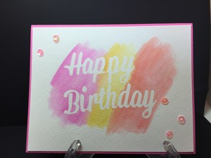 You first cut words out of the freezer paper and then iron it onto your watercolor paper. For the next step you color over the word with your watercolors and let it dry or give it a quick blast of heat with a heat tool and then peel the freezer paper off. Very fun and relaxing to do.